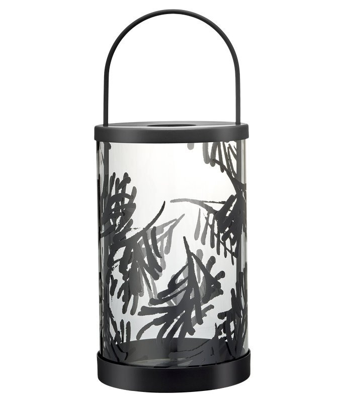 La lanterne Conifer 37 cm est une lanterne à bougie imaginée par Teemu Järvi, dont le travail graphique s’inspire directement des forêts nordiques. Le motif de conifères, imprimé sur le verre, crée une ambiance lumineuse douce lorsque la flamme est allumée.
