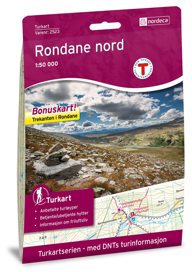 Carte de randonnée et de plein air du Rondane Nord (Norvège). La carte couvre les sommets les plus hauts du parc national : Rondslottet (2178m) et Høgronden (2115m). La carte Rondane Nord est compatible avec le système GPS (grille UTM). Papier résistant à l'humidité.