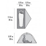 Le tissu du double-toit en DuraShield assure à la tente : légèreté, imperméabilité et robustesse. Celui-ci est siliconée sur la face extérieure et enduit de polyuréthane sur la face intérieure. Le haut des portes du double-toit disposent d’une fenêtre de ventilation. La chambre est en grande partie en tissu plein, avec quelques encarts en mesh pour l’aération. Cela limite les courants d’air à l’intérieur.