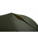 Le tissu du double-toit en DuraShield assure à la tente : légèreté, imperméabilité et robustesse. Celui-ci est siliconée sur la face extérieure et enduit de polyuréthane sur la face intérieure. Le haut des portes du double-toit disposent d’une fenêtre de ventilation. La chambre est en grande partie en tissu plein, avec quelques encarts en mesh pour l’aération. Cela limite les courants d’air à l’intérieur.
